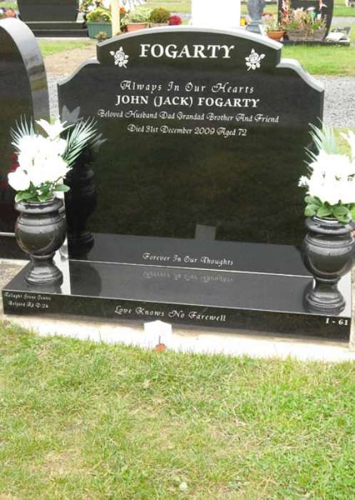 Tallaght Stone Centre can make any headstone seen on our website suitable for Newlands Cross cemetery; you can get any shape headstone in a variety of different colour granites